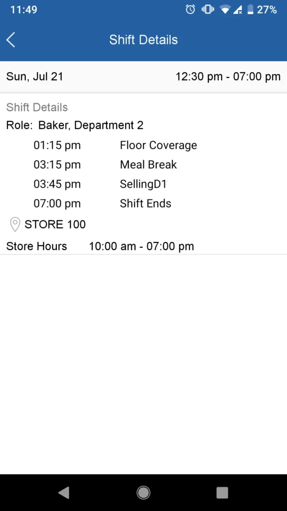 Tap on an individual shift entry to view more details.