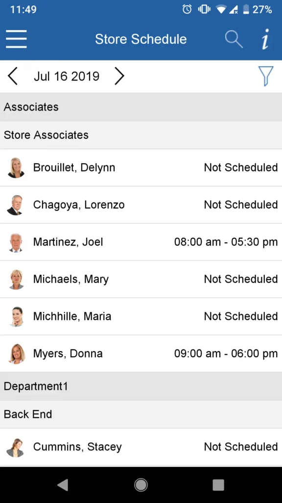 Employees can often switch between daily, weekly, or monthly schedule views depending on the configuration.